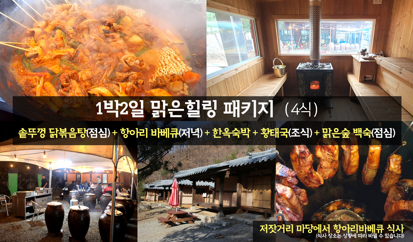 솥뚜껑 닭볶음탕(중식) + 황토찜질방 + 저녁 항아리 바베큐(석식) +